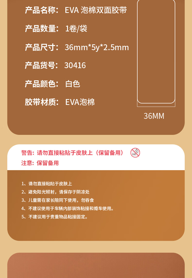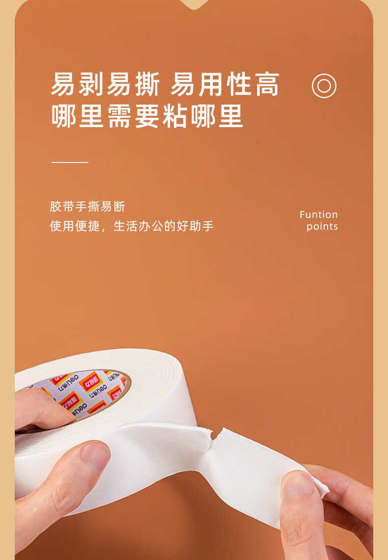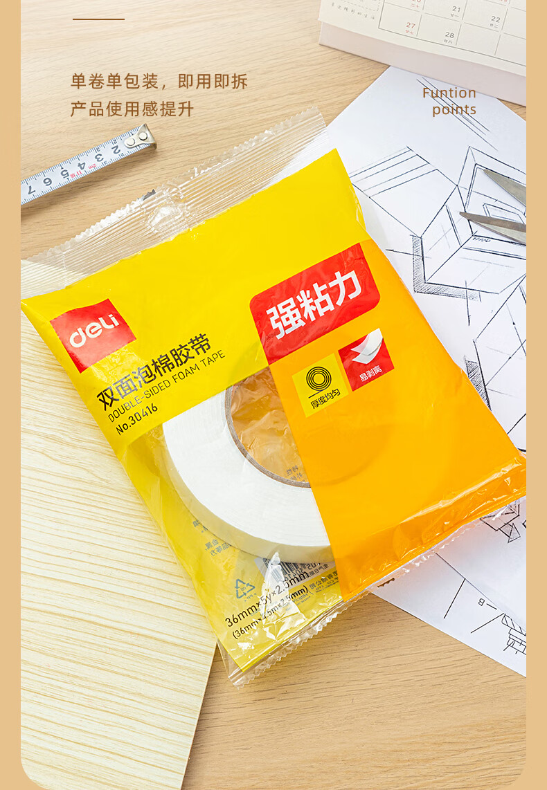 得力/deli 2.5mm 胶带 泡棉双面胶 单卷