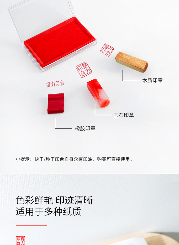 得力 9864 印台/印泥/印油 137*88mm透明外壳方形快干印台印泥 办公用品 红色9864