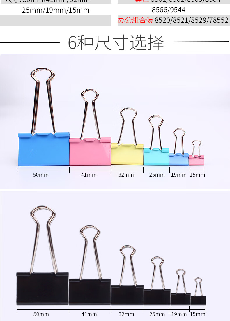 得力(deli)彩色长尾夹小号票夹大号燕尾夹黑色文件夹子金属小夹子办公用中号 中小号25mm黑色/筒48只(8564)