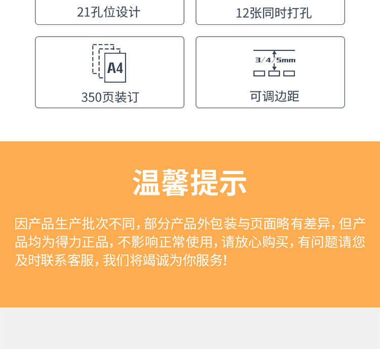 得力 3870 装订机 省力型胶圈/夹条装订机 21孔文件打孔机