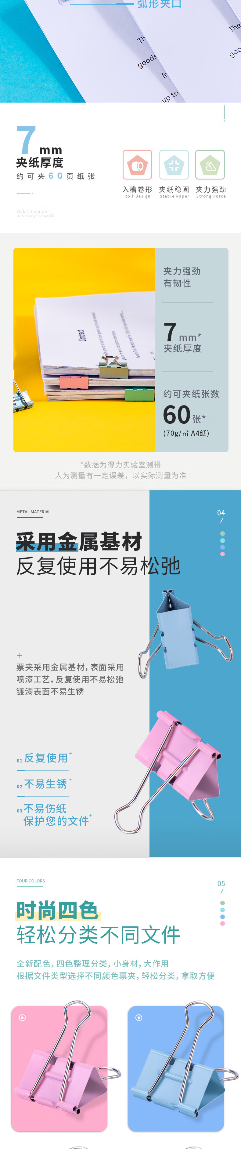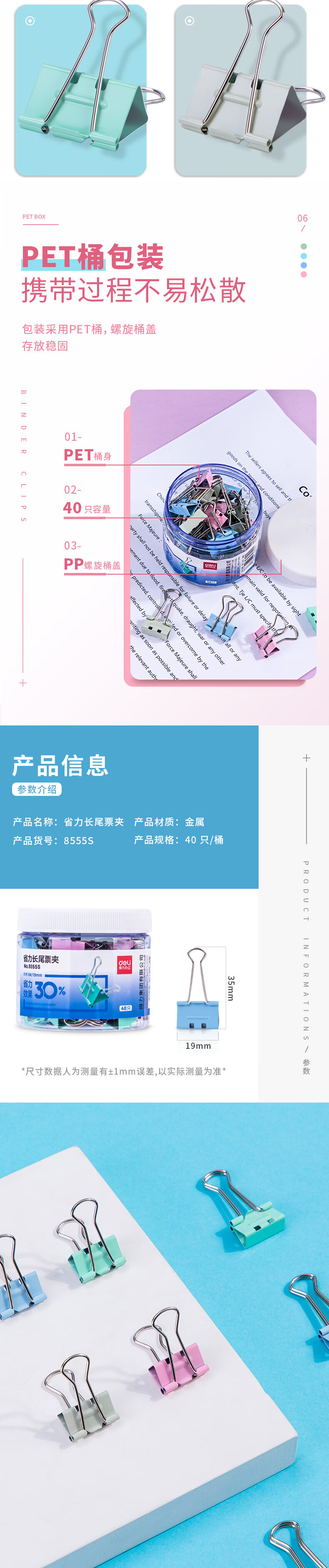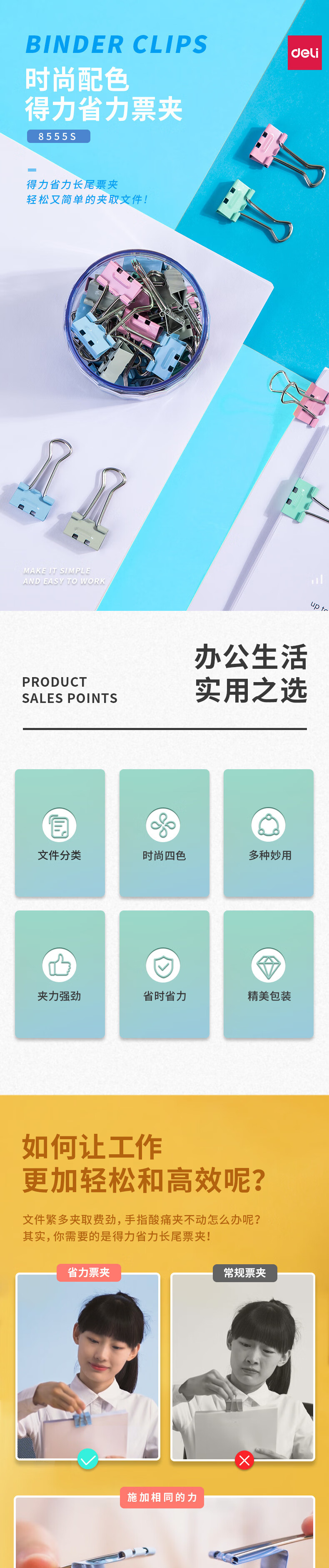 得力/deli 8555es 长尾夹 彩色