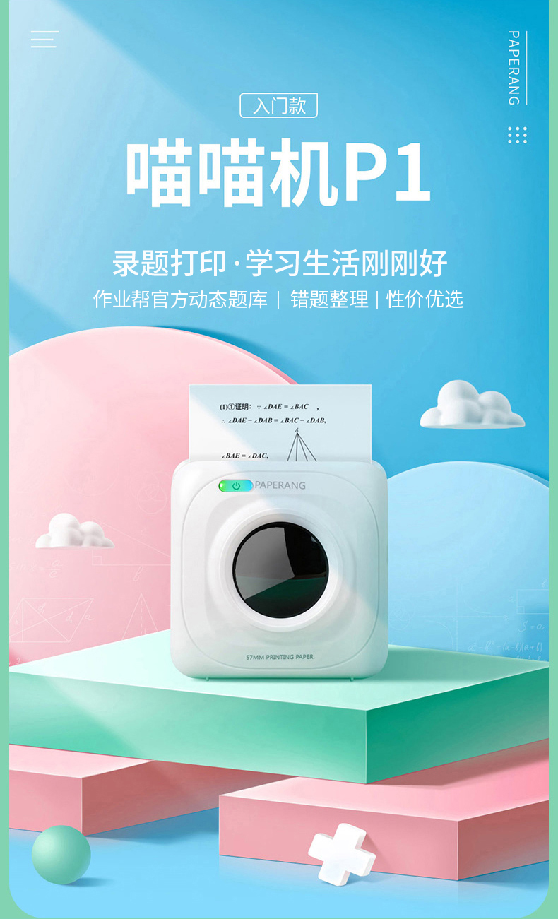 喵喵机P1错题打印机 作业帮学生错题整理神器家用迷你便携照片热敏打印机 粉