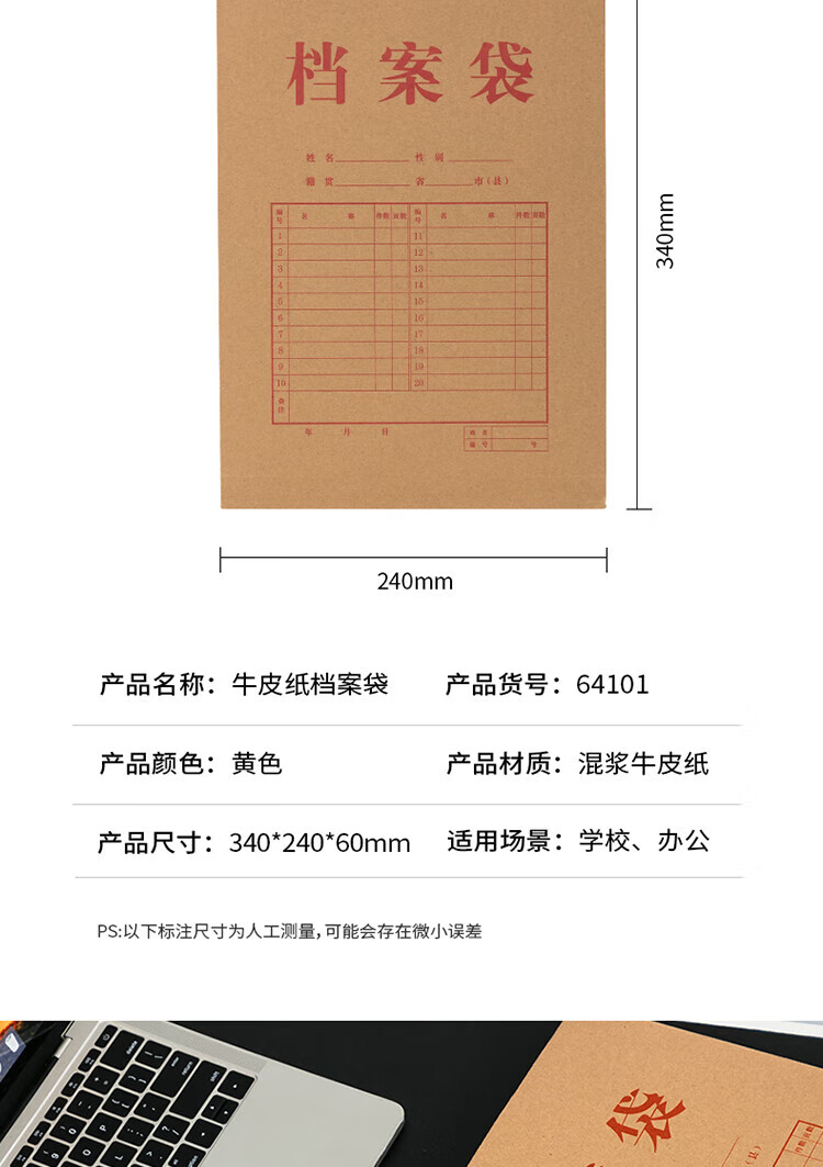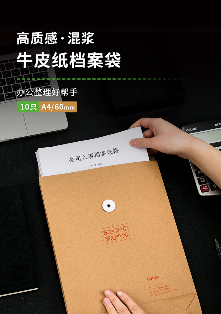 得力/deli 6cm 文件袋 牛皮纸档案袋 个