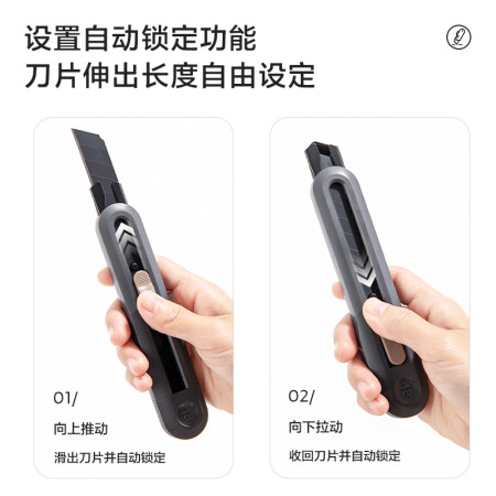 得力纽赛 NUSIGN 美工刀 大号撞色设计美工刀壁纸刀裁纸刀 办公用品 尾部自带折刀器 深灰色 NS062