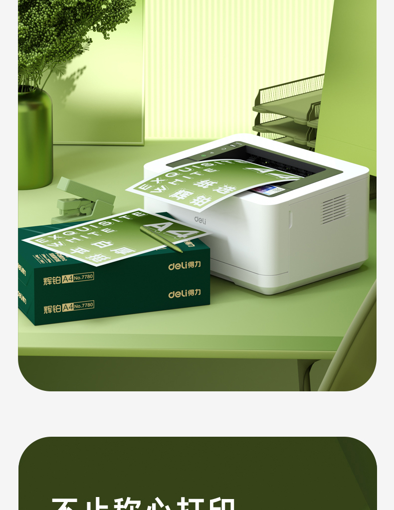 得力 7783 复印纸 辉铂A4打印纸 70g克500张*5包一箱 进口原纸复印纸 双面草稿纸 整箱2500张 7783