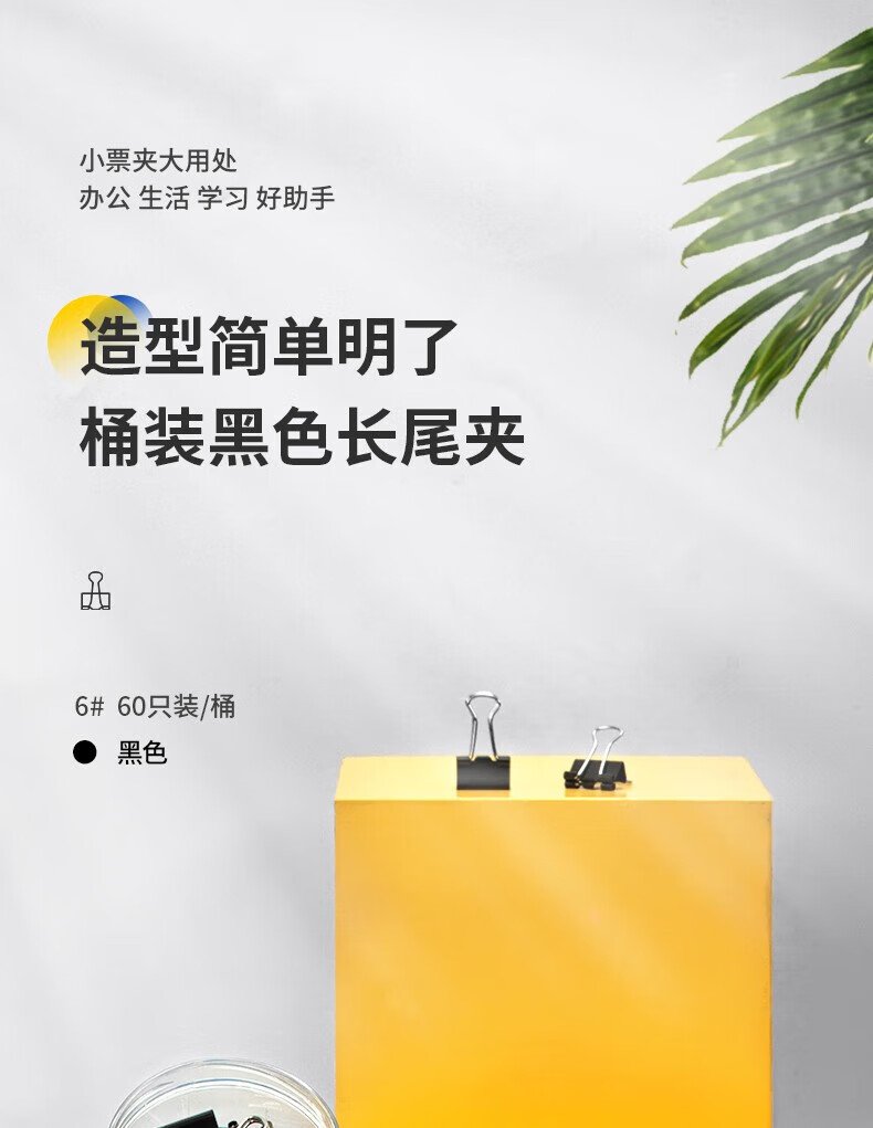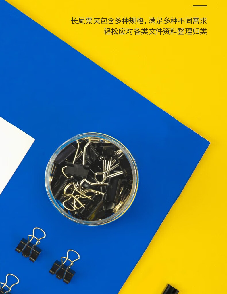 得力办公长尾夹票据夹资料夹燕尾夹15/19/25/32/41/51mm票夹财务 【黑色】25mm48个/筒8564