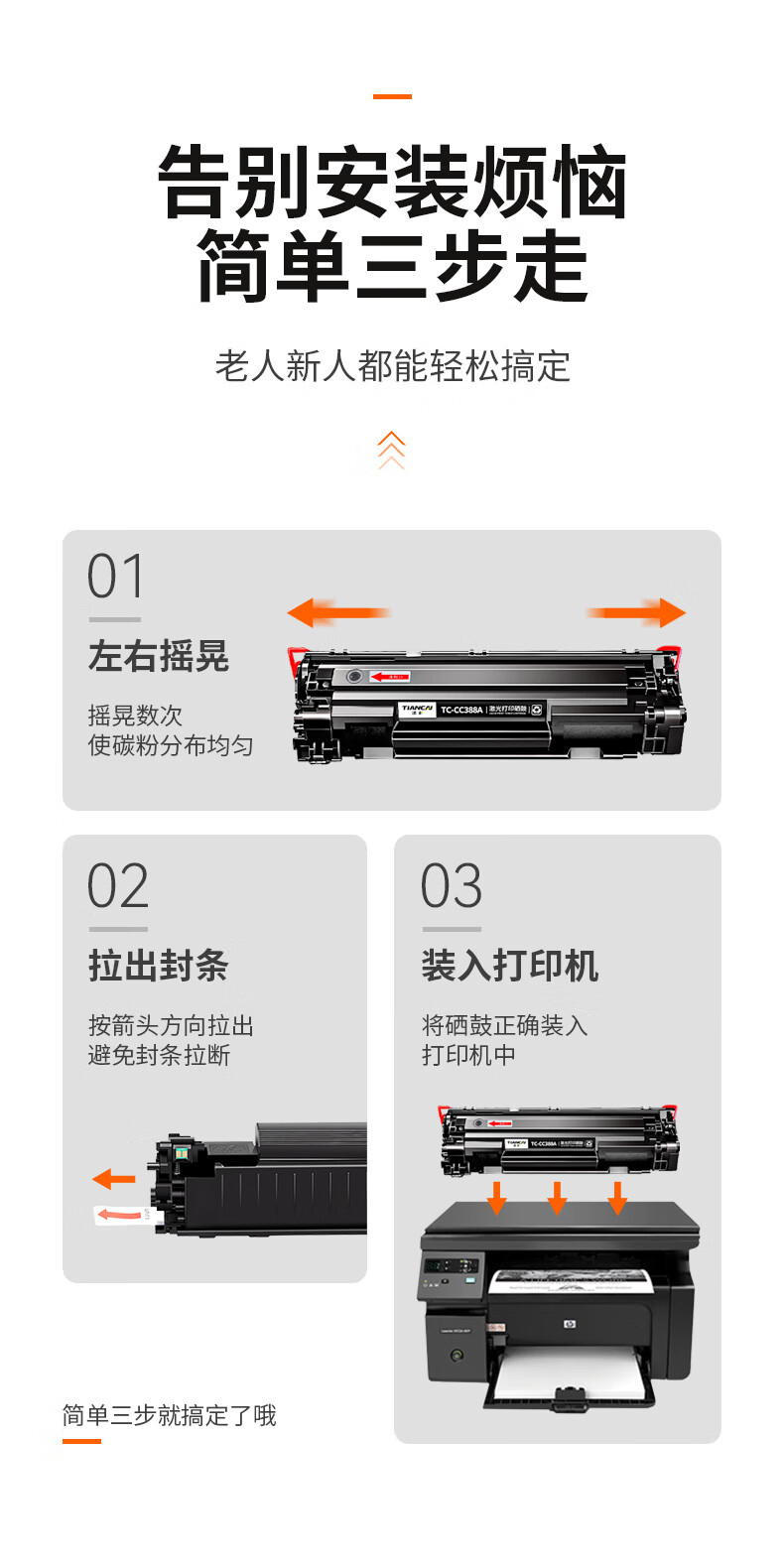 惠普/HP 1136 硒鼓 88a硒鼓388a硒鼓hp m126a碳粉盒CC388a p1108 p1106 p1008 m128fn M1213nf打印机墨盒
